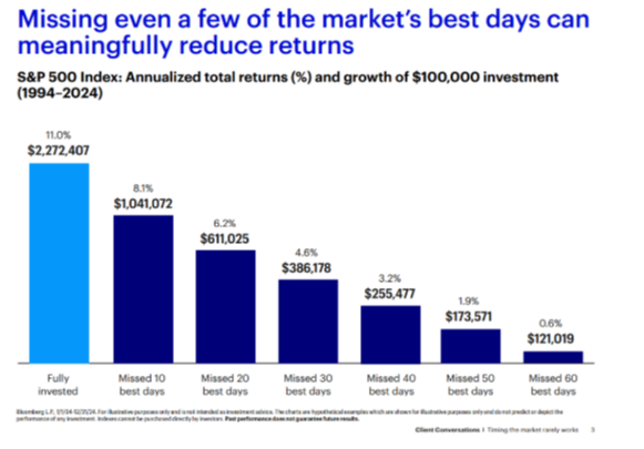 How much evidence does one person need for cripes' sake? Zoom out from the micro-lesson of 2025 and look at the last 30 years’ worth of evidence that market timing doesn’t work, and you see a scary picture for those who practice market timing.