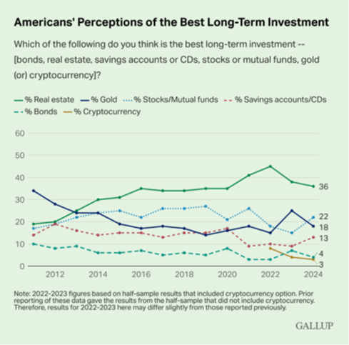 Every year since 2011, Gallup has asked people what they think the best long-term investment is: